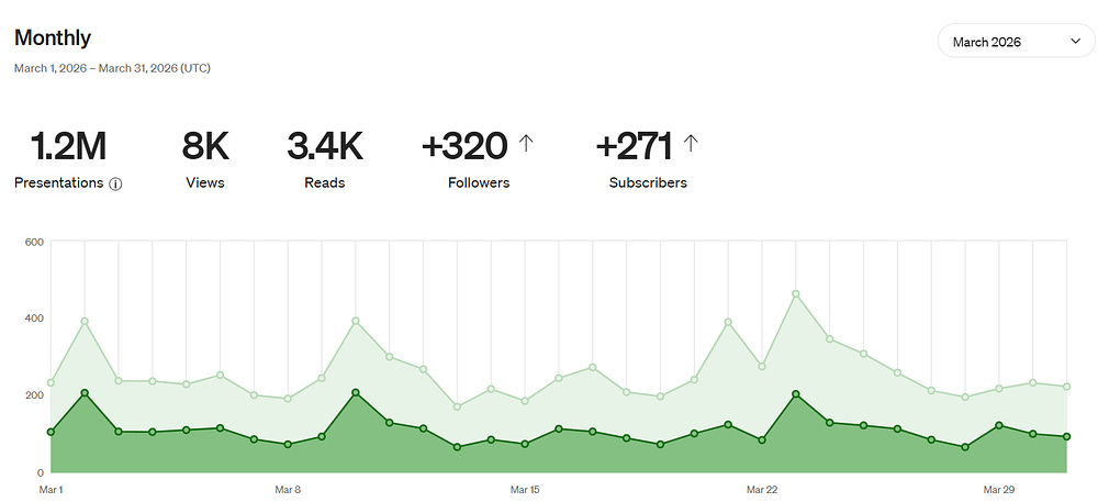1 Million Medium Presentations Stats and My Earnings for March 2026