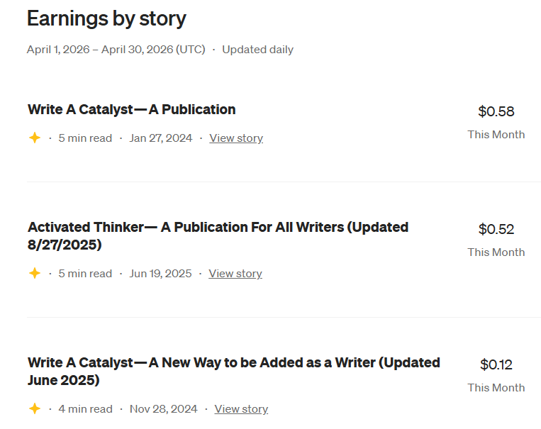 Well, as you can see, it’s doing better than the Story earnings so far for April. I haven’t written an article for a while, so the format feels a bit odd, or unfamiliar even for myself.